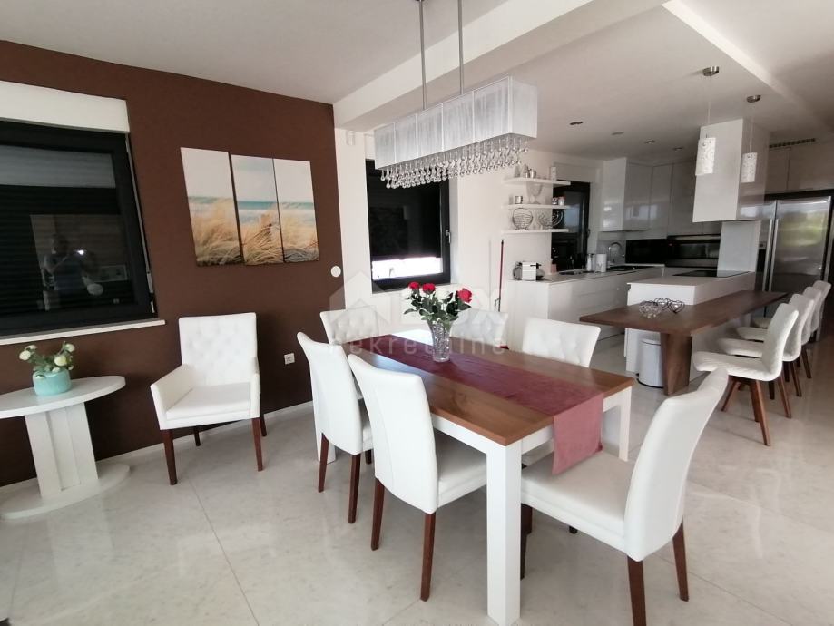 Na spomenutoj okućnici koja se sastoji od okvirnih 150m2, uz natkrivenu terasu nude se mnoge dodatne mogućnosti kao što su ljetna kuhinja s roštiljem, dovoljno prostora za zabavu s prijateljima i obitelji, kao i bazen koji predstavlja idealno rješenje za osvježavanje tijekom toplih ljetnih mjeseci. Zanimljiv detalj jest svakako zaseban izlaz/ulaz iz dvorišta koji nas direktno povezuje sa šetnicom na kojoj možete pronaći brojne restorane, barove, trgovine, kao i pristup spomenutoj uređenoj plaži.