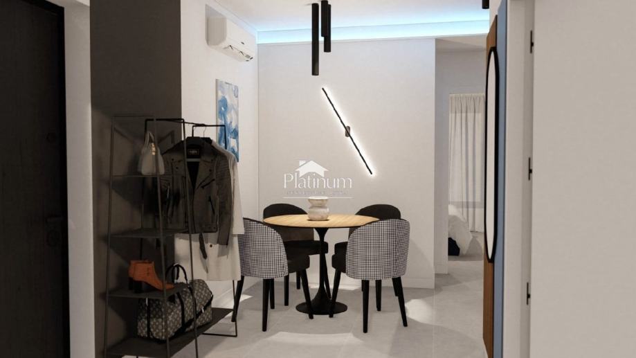 Stan se sastoji od ulaznog hodnika, tri spavaće sobe,dvije kupaonice,kuhinje i blagovaonice iz koje se izlazi na loggiu orijentirana na južnu stranu, dnevnog boravka koji ima izlaz na natkrivenu terasu gdje možete uživati cjelodnevno u suncu.
