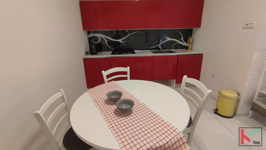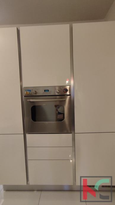 Kompletno je namješten kvalitetnim namještajem sa ugrađenom bijelom tehnikom renomiranih proizvođača.