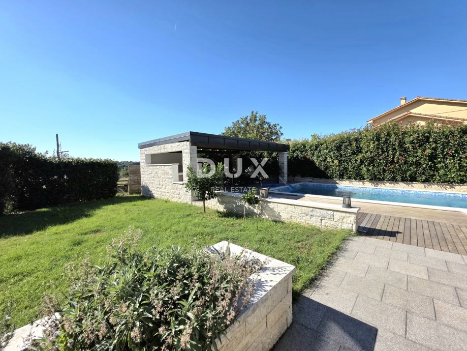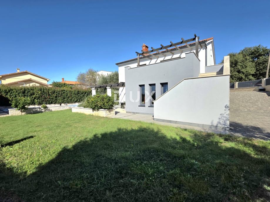 Stražnji dio okućnice prava je oaza za opuštanje i druženje: tu se nalazi bazen s mogućnošću grijanja vode, sunčalište, prostrana natkrivena ljetna kuhinja s roštiljem, te travnata površina savršena za dječju igru, obiteljska okupljanja i boravak kućnih ljubimaca.