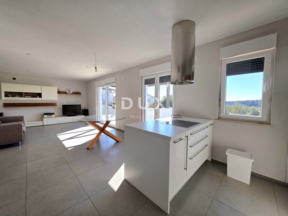 Središnji dio stana čini otvoreni dnevni prostor koncipiran po načelu open-space – moderna kuhinja s otokom skladno se spaja s blagovaonicom i prostranim dnevnim boravkom, stvarajući toplu i povezanu atmosferu doma. Velike staklene stijene otvaraju prostor prema natkrivenoj terasi s otvorenim pogledom na grad i zelenilo, idealnoj za objedovanje, druženje i uživanje u mirnim večerima.