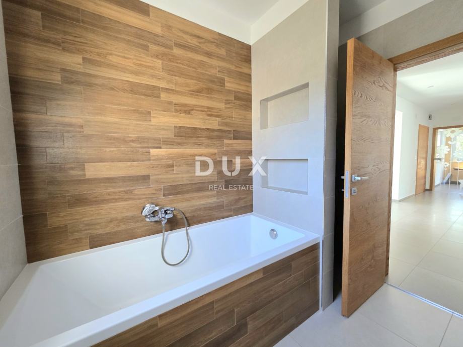 Uređenje okućnice zaokruženo je sustavom automatskog navodnjavanja i raskošnim biljem, maslinama i cvjetnim nasadima, dok sama pozicija kuće – posljednja u građevinskoj zoni – jamči potpuni mir, privatnost i odsustvo buke.