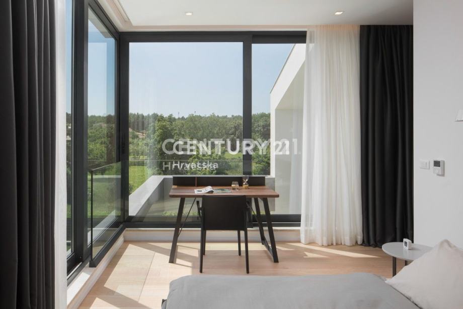 Veoma lijepog, minimalističkog izgleda, prostire se na čak 496m2, kroz tri etaže. Sam prilaz villi omogućen je preko malog mostića u atriju, a kompletan prilaz kući prilagođen je i osobama s poteškoćama u kretanju.