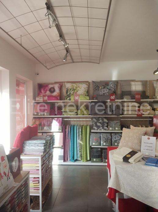 Poslovni se prostor proteže na 85 m2, te se sastoji od jedne velike prostorije, skladišta i toaleta. Potpuno je opremljen za trgovinu, a može biti i druge namjene, ured, uredi, ambulanta,salon Itd.
