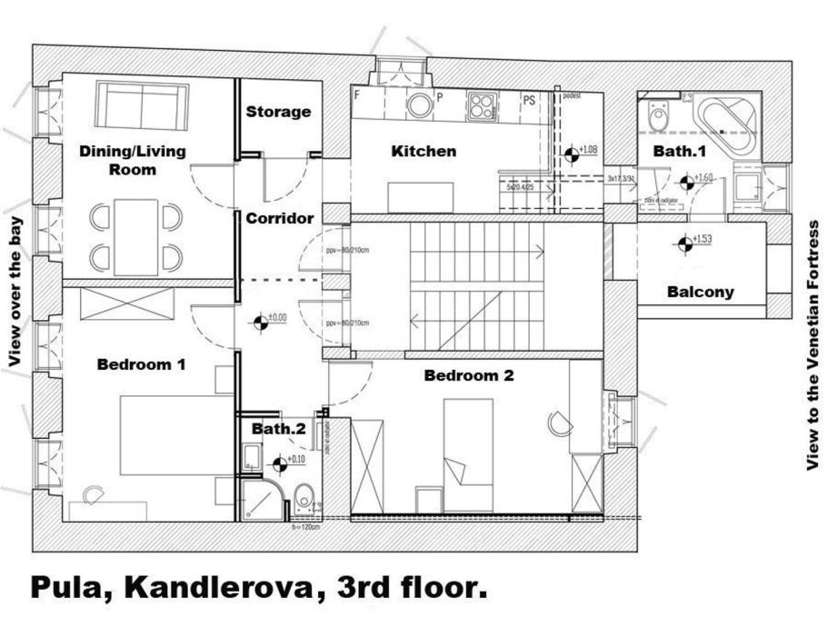 Prodajemo stan u samom centru Pule. Nalazi se na 3. katu Austrougarske zgrade, a sastoji se od 2 spavaće sobe, dnevnog boravka, kuhinje, dvije kupaonice, terase i hodnika.