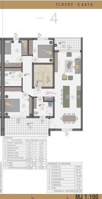 Na prodaju je veliki stan u mirnome naselju u Puli, na drugome katu moderne novogradnje. Radi se o investitoru s iskustvom koji već dulje vrijeme gradi. Stan je smješten na drugom katu zgrade, i jedini je na katu. Stan se sastoji od prostranoga dnevnoga boravka sa kuhinjom i blagavaonom iz kojih se izlazi na natkrivenu terasu, zatim 3 spavaće sobe i 2 kupaonice i još jedne terase. Stanu pripadaju dva parkirna mjesta i spremište u prizemlju zgrade. Grijanje na klima uređaj i podno grijanje u kupaonicama. Idealno i za cjelogodišnji boravak i život ali i za rentu.