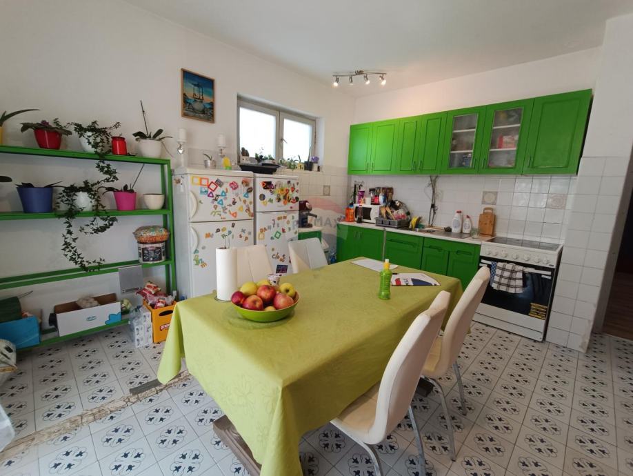 U prizemlju se nalazi stan koji se sastoji od dnevnog boravka, kuhinje, dvije spavaće sobe i kupaonice, te dvorišta.