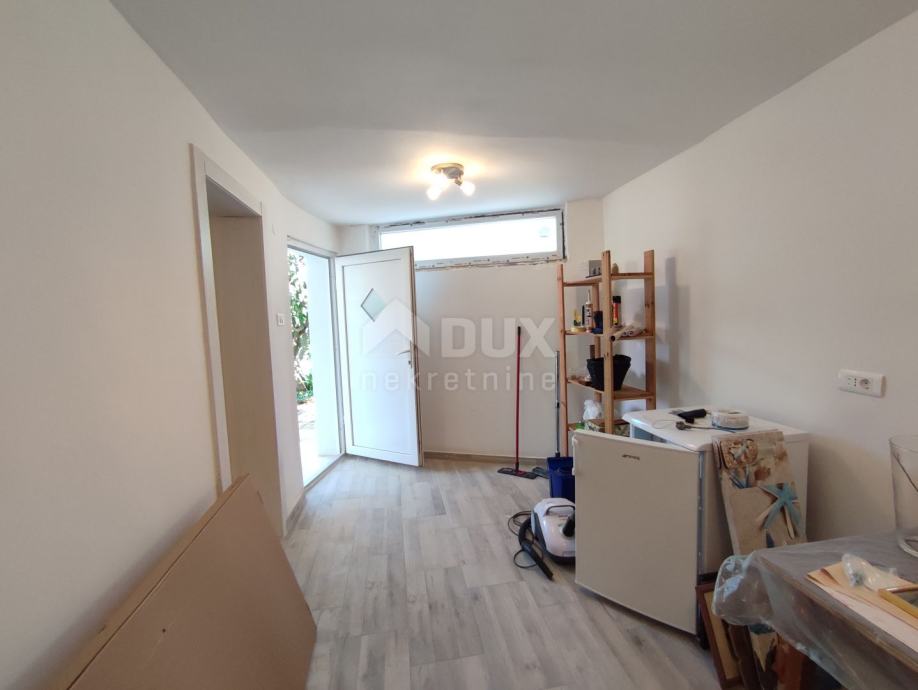 Prostor je organiziran tako da su se u prizemlju smjestila dva manja studio apartmana, od kojih svaki posjeduje vlastitu kuhinju, osunčani dnevni boravak s izlazom na vanjsku terasu i dvorište, kao i kupatilo.