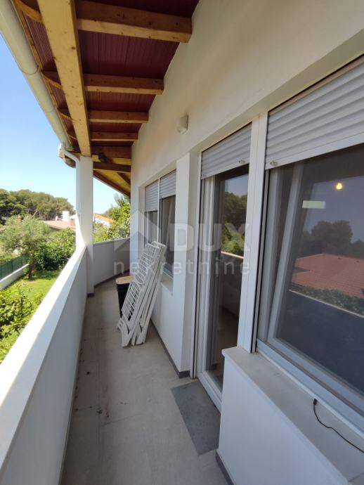 Vanjskim stepeništem pristupa se gornjoj etaži gdje se smjestio 2SS+DB apartman s vlastitom odvojenom kuhinjom i blagovaonom, većim osunčanim dnevnim boravkom iz kojega se proteže izlaz na vanjsku natkrivenu terasu koje se proteže dužinom cijele etaže, zatim odvojene u privatnom dijelu se nalaze dvije spavaće sobe od kojih jedna posjeduje vlastiti balkon, zatim jedno kupatilo i predsoblje kao vešeraj.