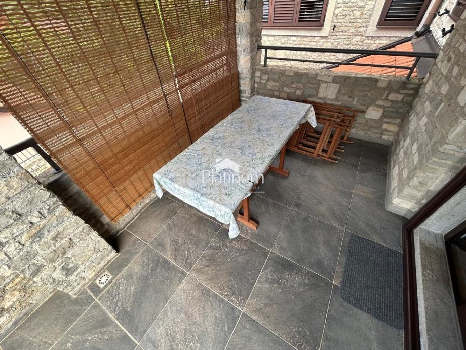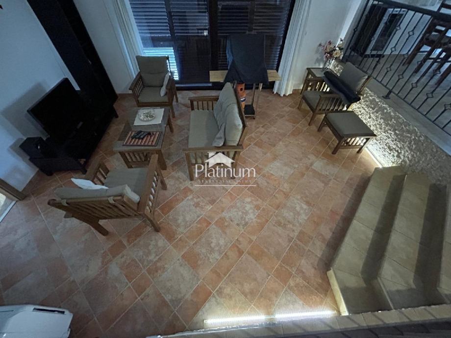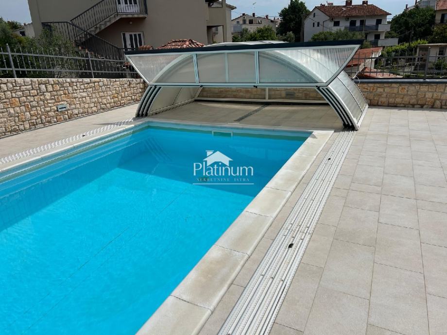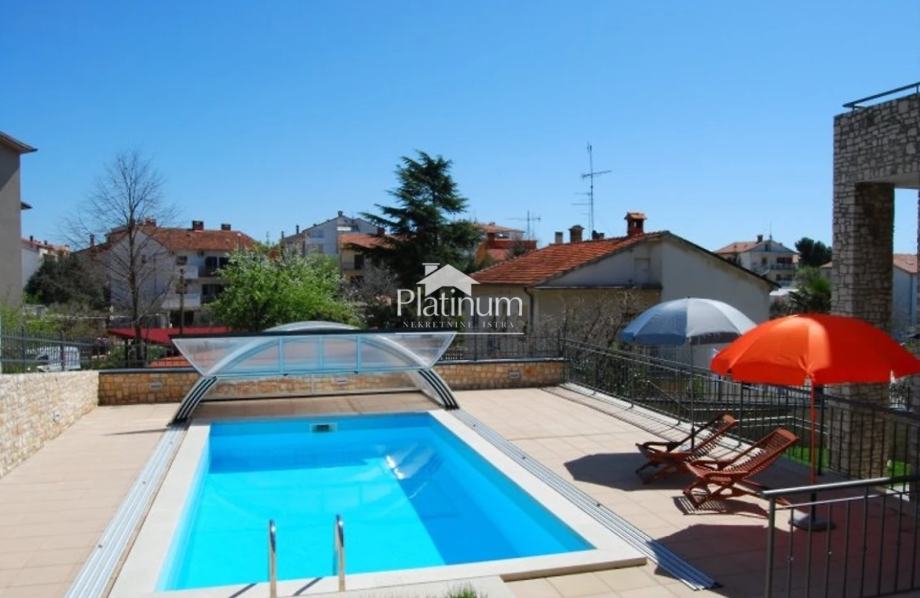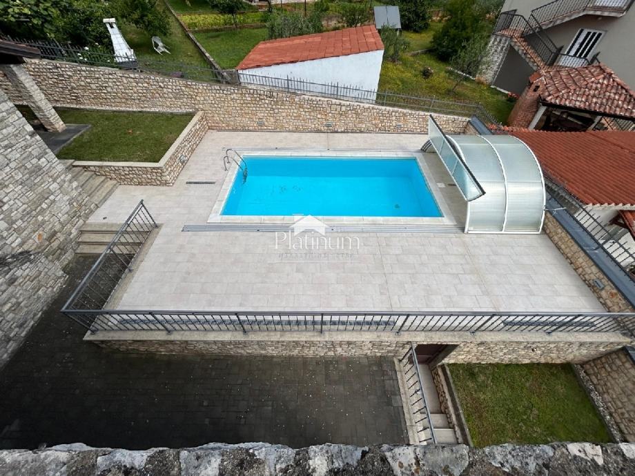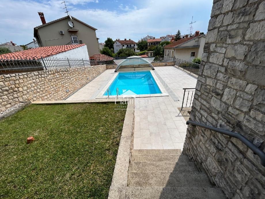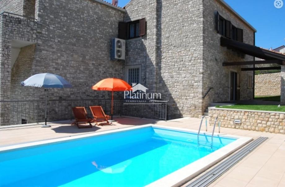 U Puli na traženoj lokaciji nalazi se ova samostojeća kamena kuća koja se sastoji od dva dijela s posebnim ulazima. U donjem dijelu nalaze se dvije garaže po 20m2, podrumski dio i stan od 60m2 s posebnim ulazom koji se sastoji od dnevnog boravka s kuhinjom, dvije spavaće sobe, wc i kupatila te vanjskom natkrivenom terasom koja je povezana s bazenom. Na katu se nalazi stan od 110m2 koji se sastoji od ulaznog hodnika dnevnog boravka s blagovaonom dvije povezane natkrivene terase, tri spavaće sobe te jedne pomoćne male sobe, wc-a i kupatila. Sve sobe su opremljene klima uređajima Stepenicama se silazi do bazena veličine 24m2 koji ima mogućnost natkrivanja.