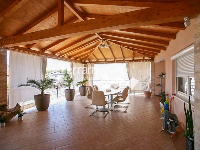 Na katu se nalazi prostrani stan sa četiri spavaće sobe, mala sauna , dvije kupaonice, toalet, kuhinja, dnevni boravak s izlazom na veliku terasu s koje se pruža pogled na more.