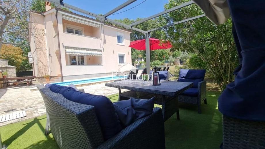 Prodaje se kompletno namještena i opremljena samostojeća vila s bazenom površine 250 m2. Sastoji od dnevnog boravka s kaminom, kuhinjom i blagavaonom u prizemlju dok su na katu četiri spavaće sobe svaka sa kupaonom.i teretane u suterenu. Na kompletno ograđenoj okućnici pored kuće je bazen sa sunčalištem, igralište za dječju igru i razonodu. Ispod krošnje stabala je smještena terasa s grillom za objedovanje na otvorenom a nasuprot istarski kažun koji se uz sve idealno uklopio.. Vila se nalazi na vrlo mirnoj lokaciji s dosta zelenila i šume a udaljenoj na samo nekoliko minuta vožnje do centra grada.