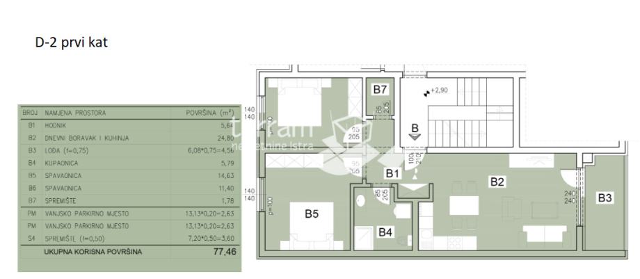 Istra, Pula, Šijana, stan 77,46 m2, 2SS+db, prvi kat, 2 x parking, #pr (prodaja)