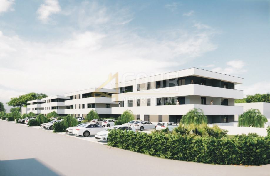 U ponudi je stan u novogradnji na mirnoj lokaciji, udaljenosti 4 km od centra Pule i 5 km od mora.