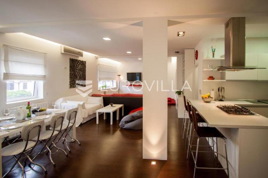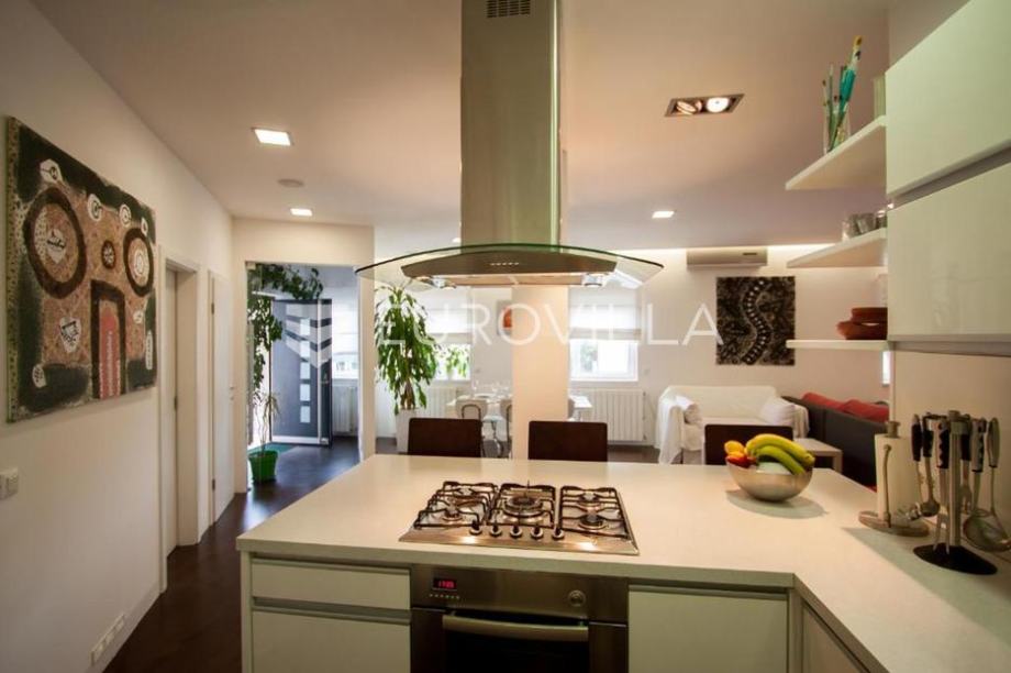 Na prodaju je prostran i izuzetno ugodan stan smješten na prvom katu kvalitetne stambene zgrade, na traženoj i praktičnoj lokaciji. Stan ukupne površine 110 m² osmišljen je tako da pruža maksimalnu funkcionalnost, ali i osjećaj topline i komfora već pri samom ulasku.Središnji dio stana...