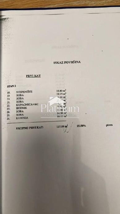 Investicija je pogodna i za ulaganje u turizam ili poslovne prostore različite namjene obzirom da je moguće napraviti i dva manja stana. Postoji mogućnost kupnje i stana u potkrovlju površine 145,03m2 tako da bi ste mogli biti vlasnici dvije četvrtine zgrade.