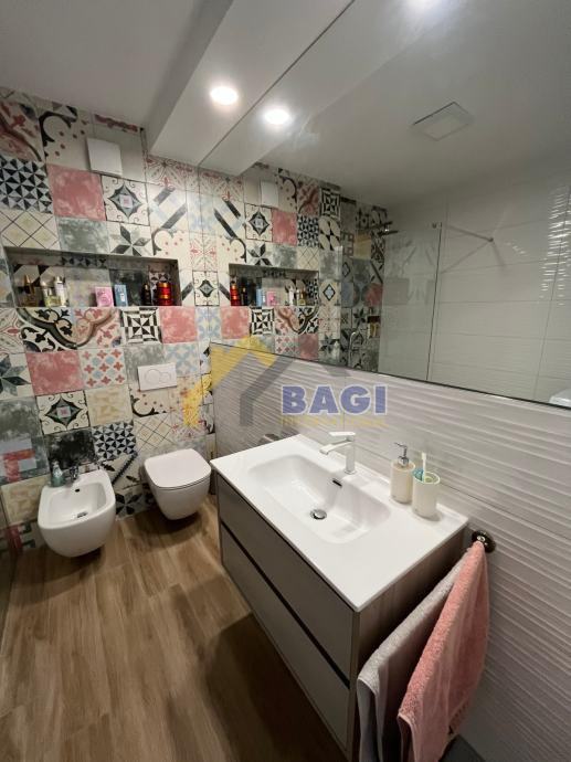 Prodajemo stan bogato opremljen, novouređen stan na prvom katu manje zgrade, u mirom obiteljskom kvartu. Stan se sastoji od kupaonice, hodnika, 2 spavaće sobe, veliki dnevni boravak + kuhinja, te velika terasa. Stan ima podno plinsko grijanje, te klima uređaj. U stanu se nalazi sve potrebno za svakodnevni život i samim time je odmah useljiv. Uz stan ide i jedno parkirno mjesto u dvorištu te spremište u podrumu.