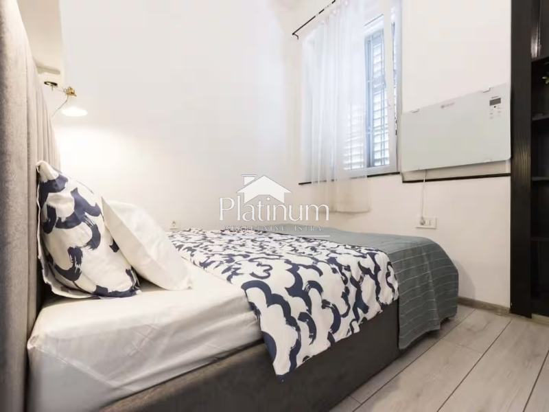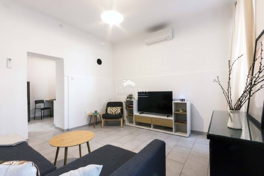 Prodaje se kompletno namješten i opremljen stan u samom centru grada površine 45,50 m2. Sastoji se od spavaće sobe, dnevnog boravka s kuhinjom, kupaone, hodnika te spremišta smještenog pored stana. Nalazi na izuzetno atraktivnoj lokaciji, u neposrednoj blizini rive i Arene, što ga čini idealnim za stanovanje ili kao investiciju za turistički najam.