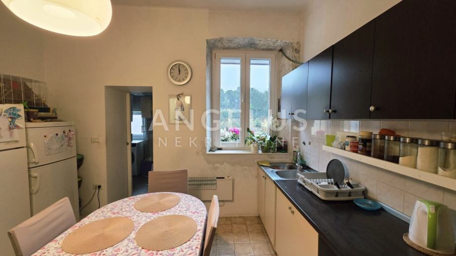 Stan se sastoji od tri prostrane sobe, kuhinje, kupaonice te velikog ulaznog hodnika koji povezuje sve prostorije. Posebna prednost ove nekretnine je dodatna soba do koje se pristupa sa stepeništa. Ta se prostorija može jednostavno spojiti s ostatkom stana i dobiti veći stambeni prostor, ili se može urediti kao garsonijera ili zasebna stambena jedinica, što otvara brojne mogućnosti korištenja.