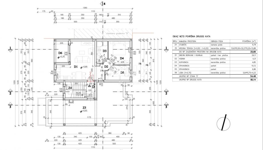 * Stan NETO 54,48m2 + Garažni paking (15m2 * 0,60 = NETO 9m2) + Krovna terasa od 47.9m2 (NETO 15.88m2)