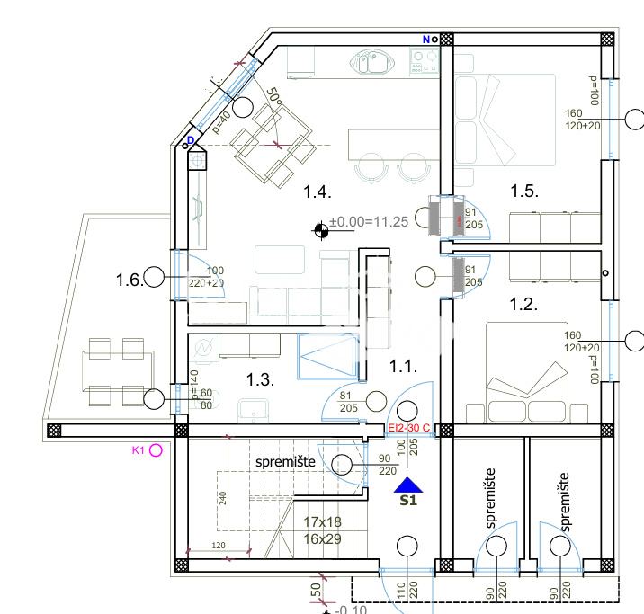 Ovaj prostrani stan pruža savršen spoj komfora i funkcionalnosti, smješten u mirnom dijelu naselja s uređenom okućnicom. Orijentiran prema istoku i zapadu, stan je vrlo sunčan, što dodatno doprinosi ugodnom ambijentu.