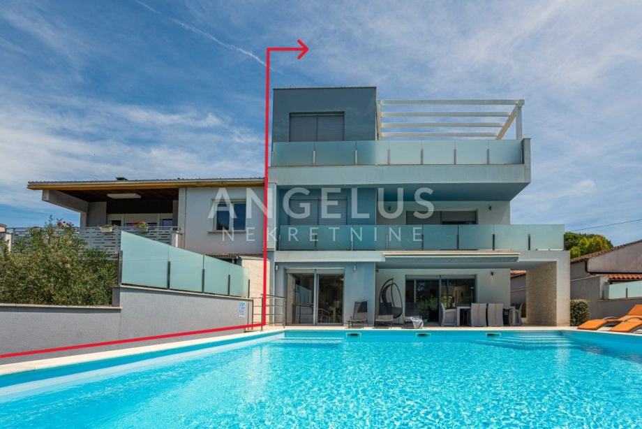In one of the most desirable neighborhoods of Pula, just 200 meters from the nearest beach, a modern villa with a swimming pool and four bedrooms is offered for long-term rental. The location offers an exceptional combination of peaceful surroundings and access to all amenities: a shopping center, restaurants and bars by the sea are just a few minutes' walk away, while kilometers of promenades and untouched park-forests allow for relaxation with jogging or long walks in the open air.