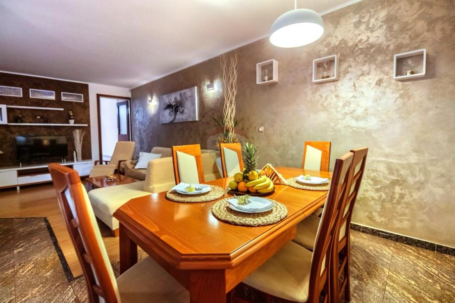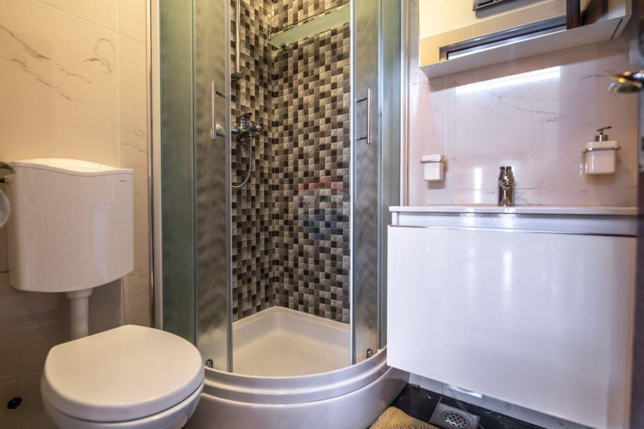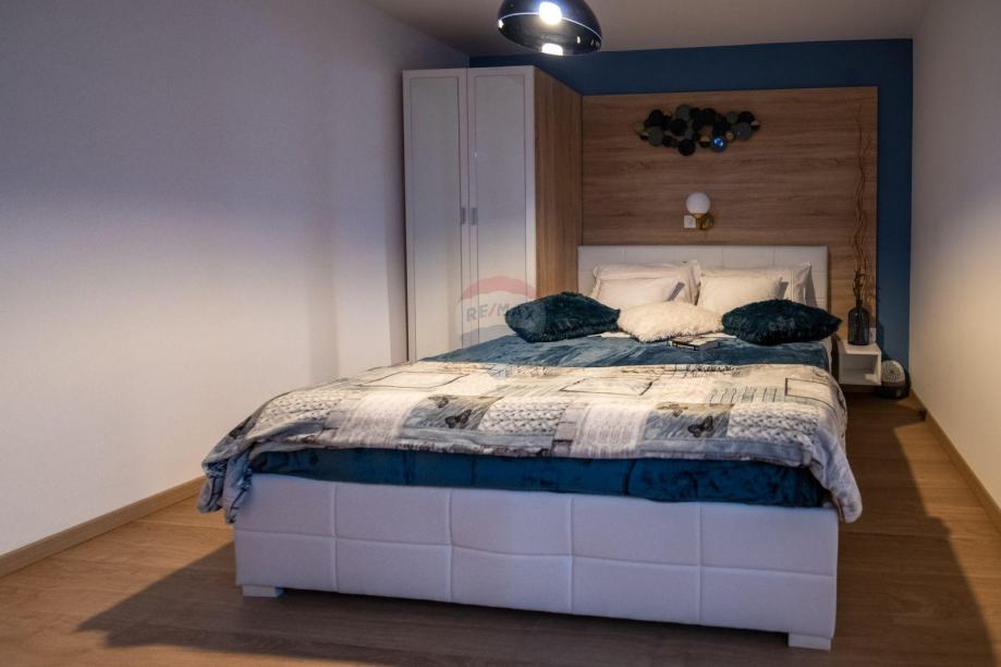 U prizemlju se nalazi stan sa dvije spavaće sobe, kupatilom, toaletom ,dnevnim boravkom, kuhinjom i blagovaonom te terasom.