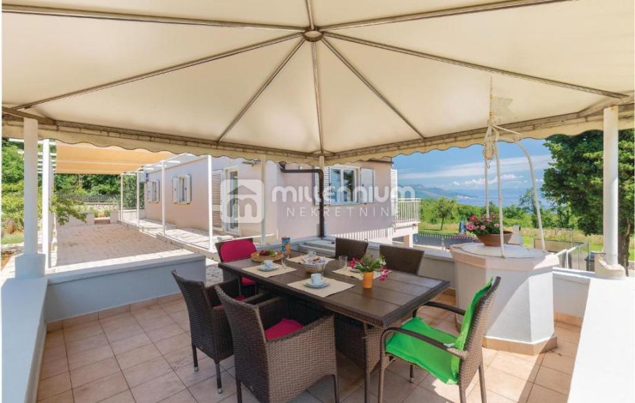 1. kat se sastoji od tri spavaće sobe i zajedničke kupaonice, terase s prekrasnim pogledom na Kvarnerski zaljev.
