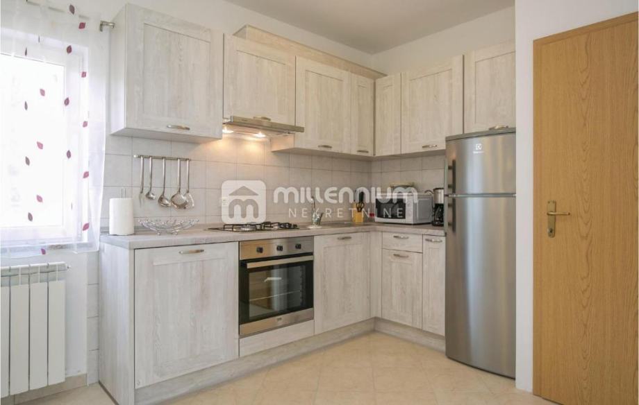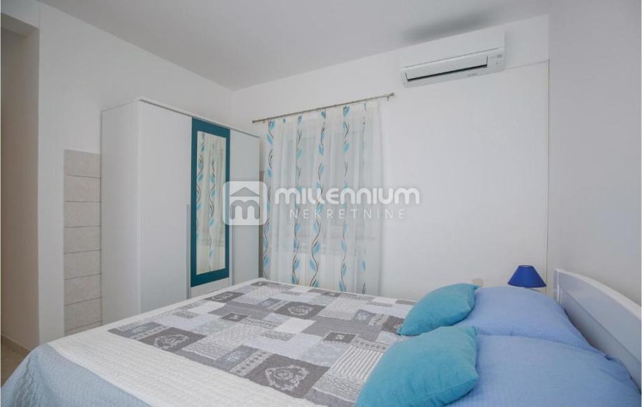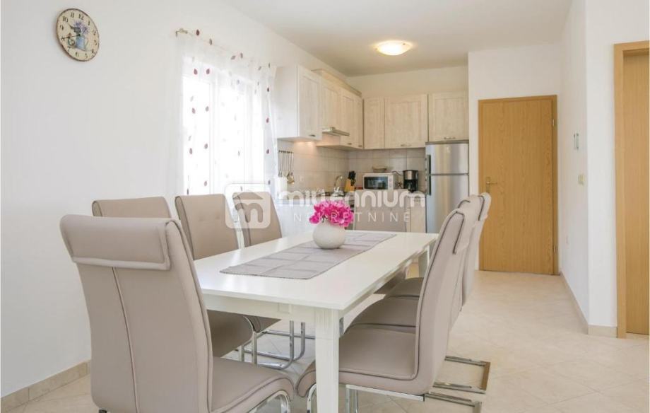 U prizemlju se nalazi prostran dnevni boravak s izlazom na sunčanu terasu, blagovaonica te potpuno opremljena kuhinja, toalet, spavaća soba i kupaonica.