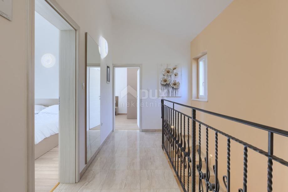 Kuća je klimatizirana, opremljena podnim grijanjem i kompletno namještena te se takva i prodaje.