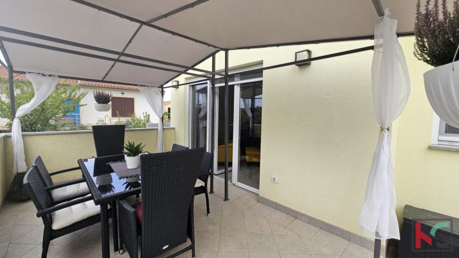 Sastoji se od ulaznog hodnika, kuhinje sa blagovaonom, dnevnog boravka iz kojeg se izlazi na natkrivenu terasu od 12 m2, dvije spavaće sobe od kojih jedna ima vlastitu kupaonicu te još jedne veće kupaonice.