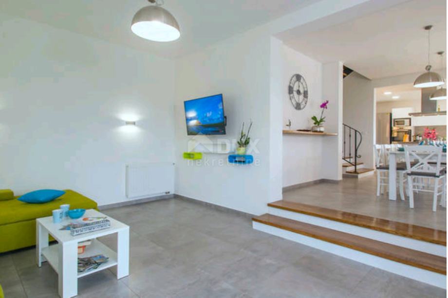 U prizemlju se smjestio dnevni boravak, kuhinja s blagovaonicom te se iz prizemnog dijela lako pristupa bazenu i vrtu.