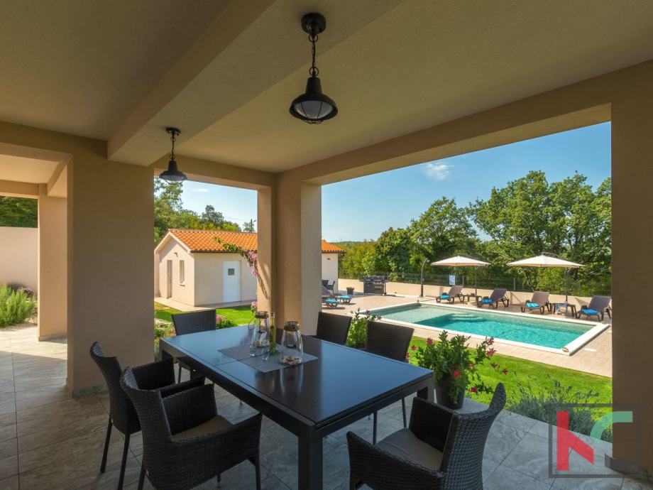 Na okućnici od 1000 m2 nalazimo vanjsku terasu i bazen, te dodatni objekt sa kuhinjom, blagovaonicom i wc-om.