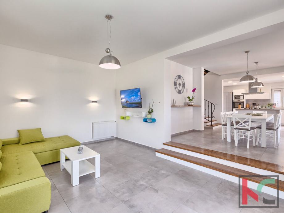 U prizemlju nalazimo dnevni dio, koji se sastoji od ''open-space'' dnevnog boravka s izlazom na predivno uređenu okućnicu, kuhinju s blagovaonicom, ostavu i spremište.