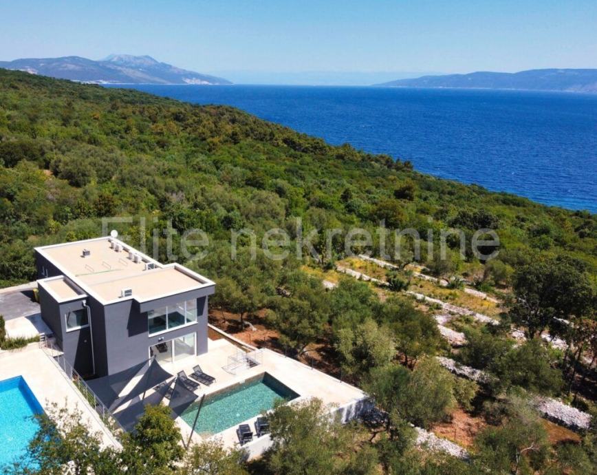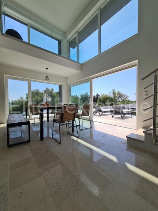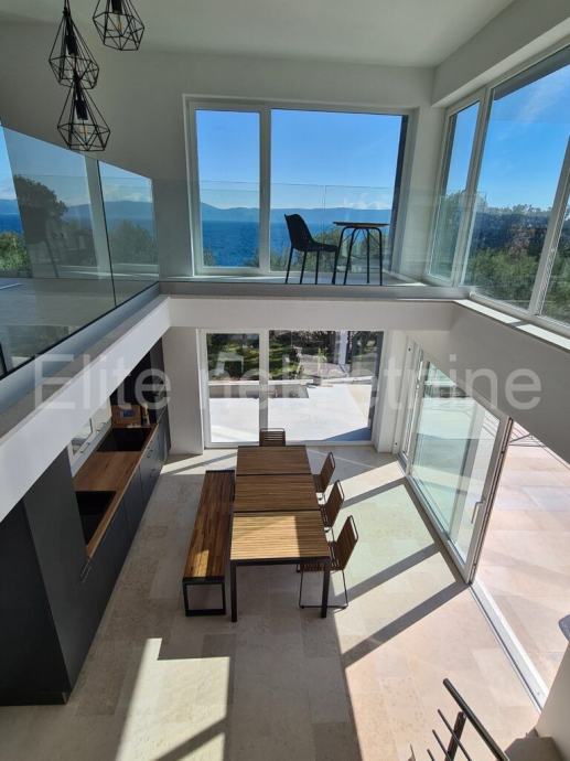 U malom mjestu u blizini Labina, gdje već sada prevladavaju kuće za odmor nalazi se i ova villa s bazenom i otvorenim pogledom prema moru. More i prve plaže su na samo 2 minuta automobilom.Zračna udaljenost do mora iznosi 300 metara.Stambena površina ville iznosi 200 m2 a proteže se na prizemlje i prvi kat. Villa ima 4 spavaće sobe, 4 kupaone posebno za svaku sobu, dva zasebna WC-a, blagovaonica, kuhinju po mjeri i dnevni boravak. U prizemlju ville nalaze se tri spavaće sobe, od kojih je jedna s bračnim krevetom, tri kupaonice i odvojeni WC, kuhinja i blagovaonica. Na prvom katu ville je dnevni boravak, nalazi se na prvom katu posebno zbog pogleda koji omogućuju staklene stijene, jedna velika spavaća soba, kupaonica i zasebni WCUređen eksterijer ville na kojem se nalazi bazen dimenzije je 4x8m s pomičnom kupolom koja omogućuje produljenje sezone kupanja i štiti bazen od vanjskih onečišćenja. Konstrukcija za 4 jedra nalazi se u bazen i pružat će budućim vlasnicima odmor i uživanje u hladu.Predviđena je i dizalica topline za grijanje bazena Godina izgradnje 2022.Samostojeća villa se nalazi na parceli koja je površine 500 m2, okrenuta prema moru što znači da su privatnost i mir za budućeg vlasnika zagarantiraniSistem grijanje/hlađenje riješen je klima uređajima u svakoj prostorijiNajbliža plaža je plaža Ravni udaljena na samo 2 minuta autom. Ukoliko tražite nekretninu s otvorenim pogledom prema moru, udaljenu od prometne buke, onda je ova nekretnina za vas.