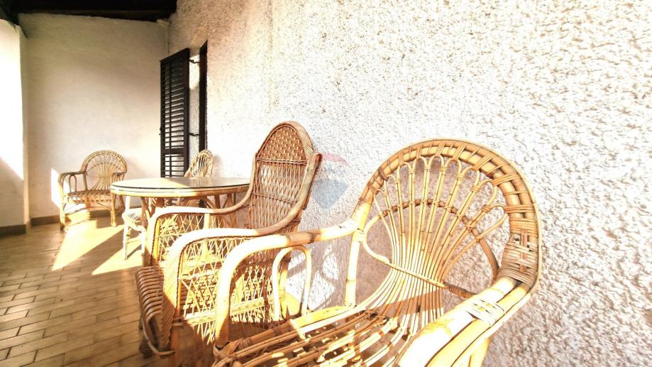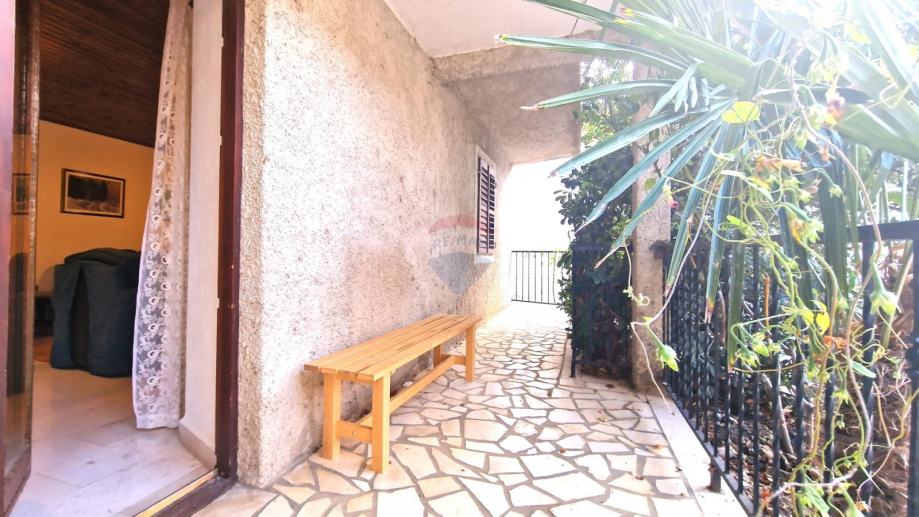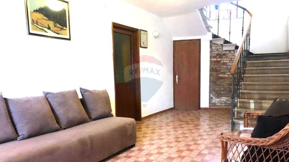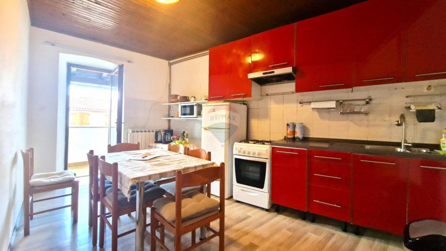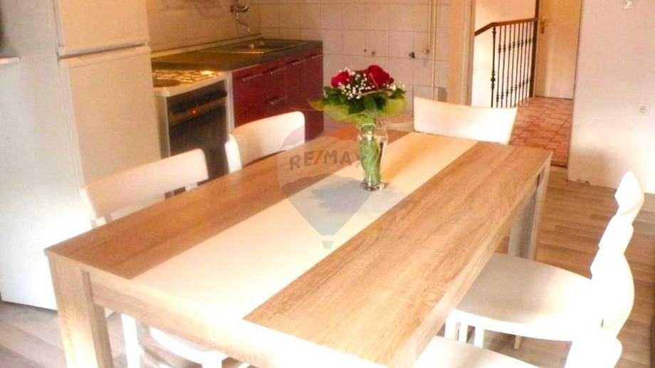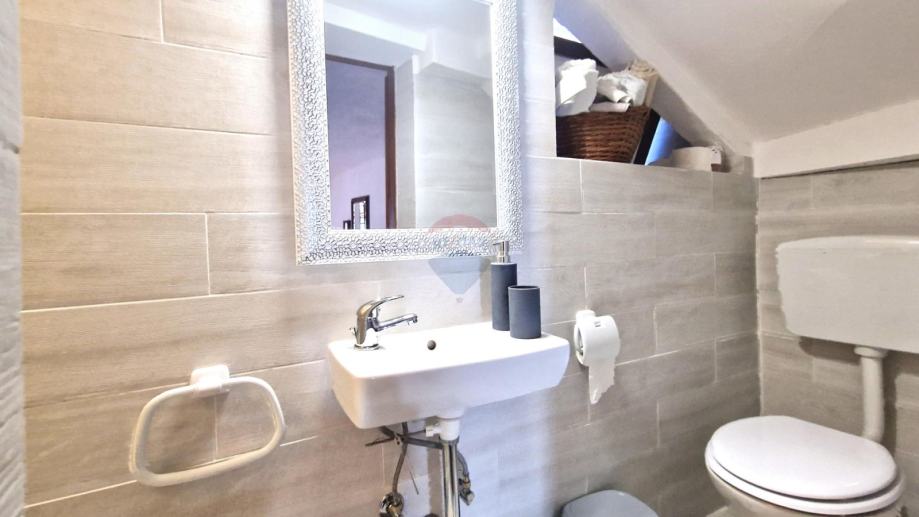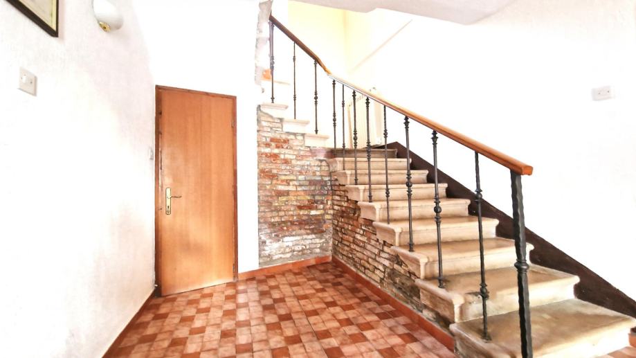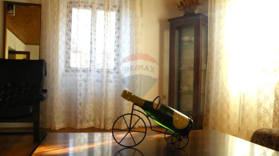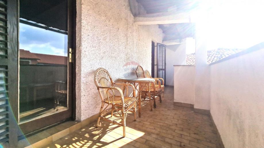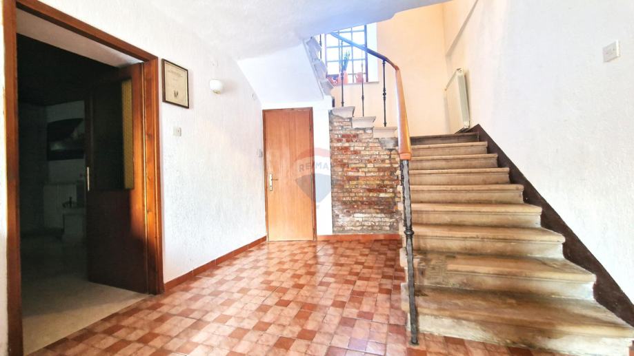 U prizemlju kuće nalazi se veliki dnevni boravak s prekrasnim otvorenim klasičnim kaminom i izlazom na terasu,kupaonica, konoba te kotlovnica, dok su na katu smještene kuhinja s balkonom,3 spavaće sobe od kojih jedna ima izlaz na šarmantni balkon i prostrana kupaonica.