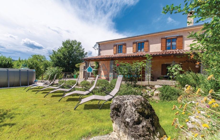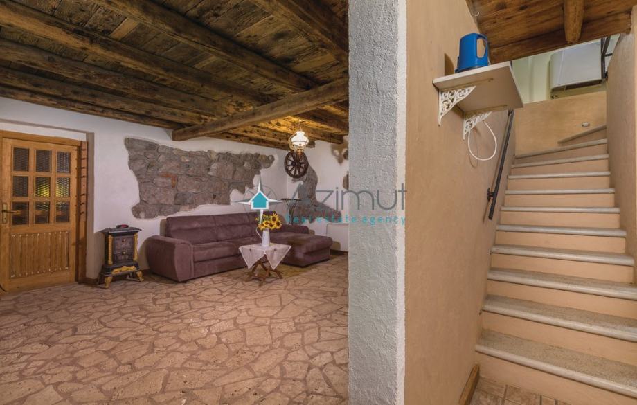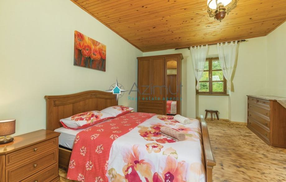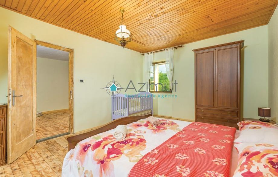 Kuća se nalazi na mirnoj lokaciji oružena zelenilom, sastoji se od prizemlja i prvog kata. U prizemlju se nalazi kuhinja i dnevni boravak a na 1. katu dvije spavaće sobe i kupaonica. Održavana okućnica s puno zelenila te montažni bazen. U sklopu kuće se također nalazi i garaža.