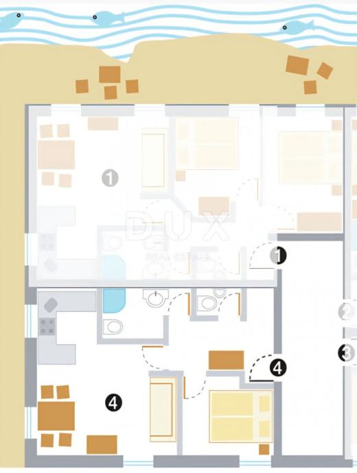 * Dodatno: zajednička terasa s pogledom na more i privatnim pristupom plaži