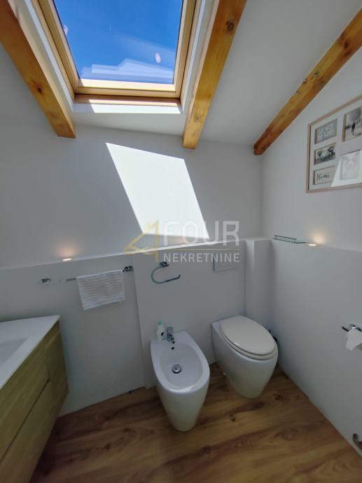 Stan se sastoji od dvije etaže koje mogu funkcionirati i kao dvije zasebne stambene jedinice – studio apartmani, što predstavlja idealnu priliku za investiciju u turistički najam.
