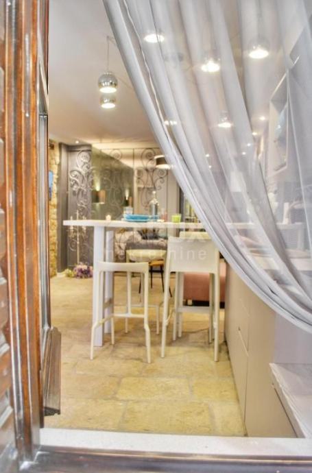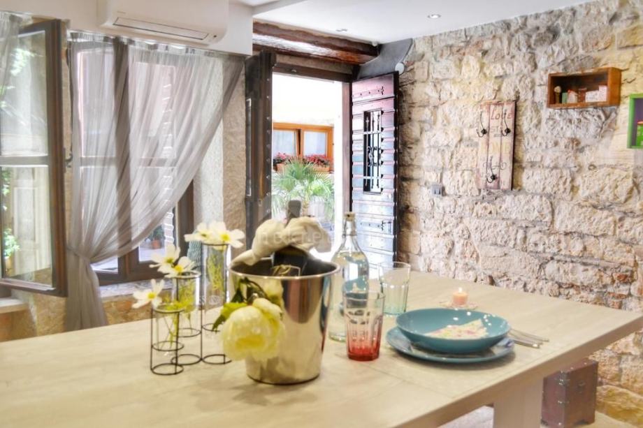 U starom gradu Rovinja prodaje se mali stan u prizemlju stambene zgrade. Stan je ukupne površine 48 m2. Klimatizirani stan otvorenog koncepta od jedne spavaće sobe, kuhinje s blagovaonom i kupaonice s tušem.