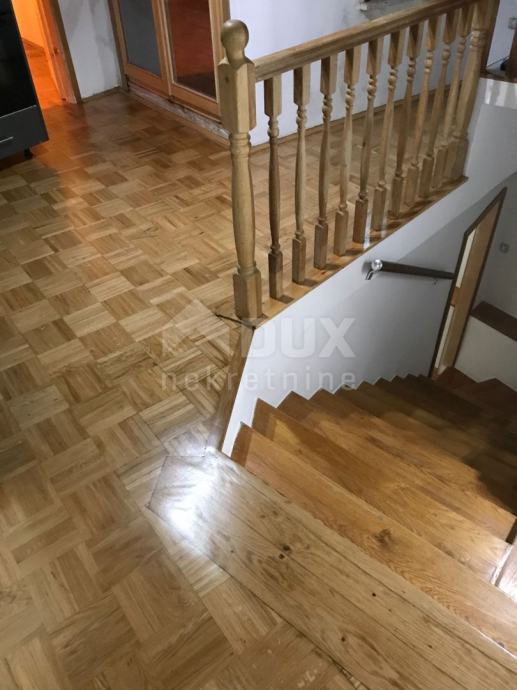 Ulaskom u kuću stižemo u hodnik koji ima ulaz u dnevni boravak s kuhinjom i blagovaonicom i poseban ulaz gdje počinju stepenice od vrlo cijenjene vrste drva hrast.
