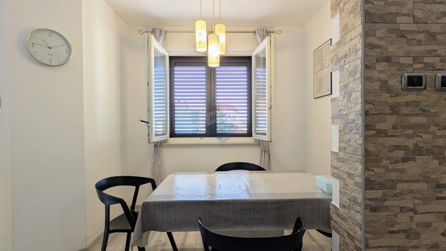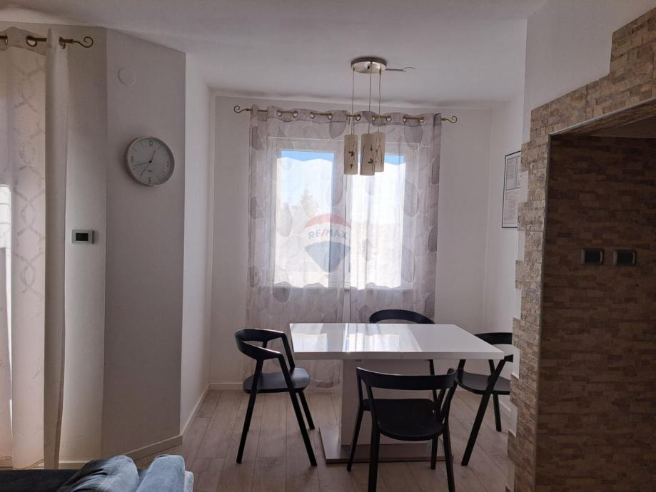 Stan se sastoji od dvije udobne spavaće sobe, velikog dnevnog boravka s izlazom na terasu, kuhinje s blagovaonicom, kupaonice i dodatnog spremišta u prizemlju.