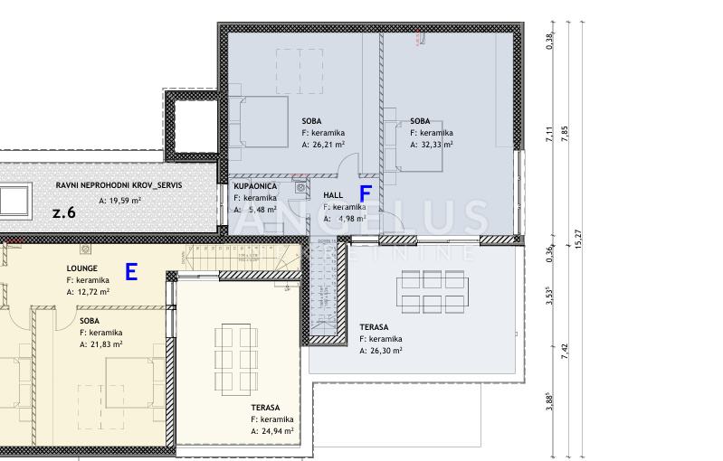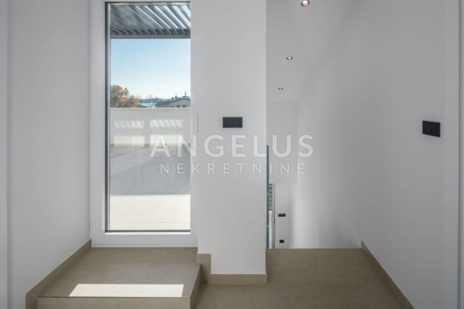 OPIS: Prodaje se luksuzni dvoetažni stan sa lifrom ukupne stambene površine 170,03m2 sa balkonom 13,31m2 i krovnom terasom 26,30m2 sa koje se vidi more, stari grad Rovinj i prepoznatljiva Crkva svete Eufemije. Stan se na prvom katu sastoji od velikog dnevnog boravka, kuhinje i blagovaonice u konceptu otvorenog prostora, dvije spavaće sobe, dvije kupaonice, wc-a te spremišta dok se u potkrovlju nalaze još dvije spavaće sobe, jedna kupaonica te velika krovna terasa.