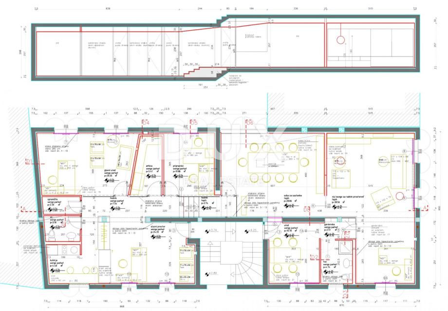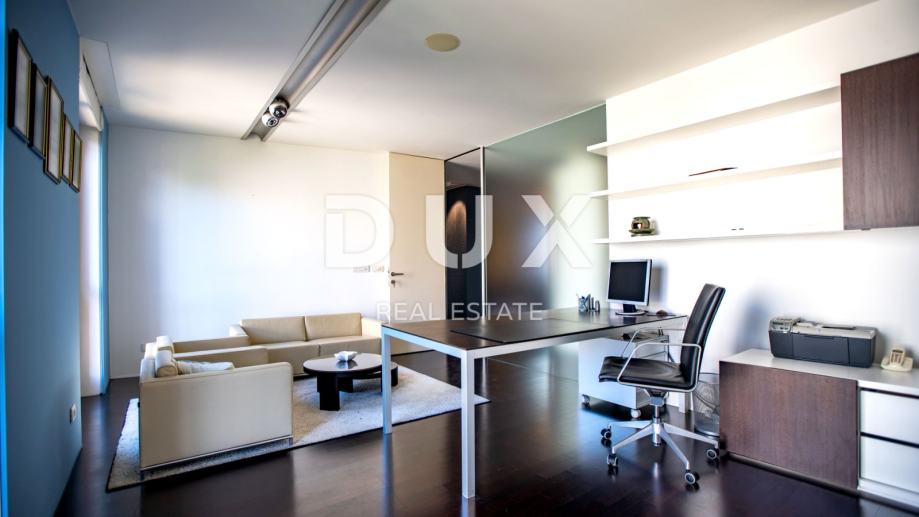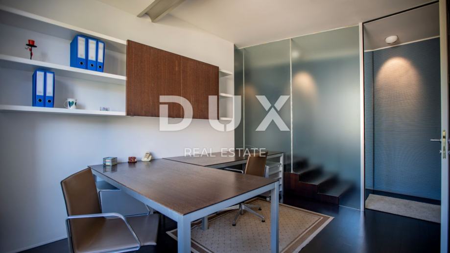 Etaža se sastoji od dvije stambene jedinice koje su u naravi spojene u jedan veliki, dizajnerski namješten i uređen poslovni prostor s dva ulaza.