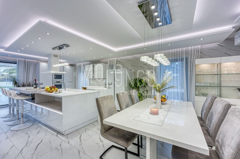 Ulaskom u vilu, dočekuje vas prostrani dnevni prostor vile koncipiran je kao "open space", s blagovaonicom i potpuno opremljenom modernom kuhinjom. Kuhinja sadrži personalizirani minibar i profesionalni štednjak na plin, idealan za druženja s obitelji ili prijateljima.