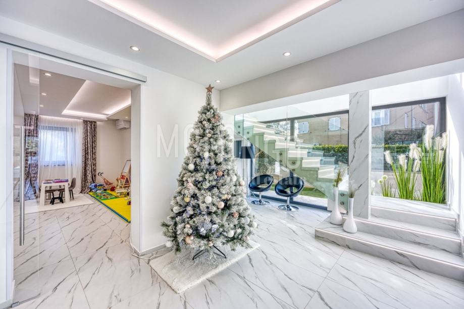Okućnica vile je uređena u skladu s vilom, s automatskim sustavom navodnjavanja i pametnim osvjetljenjem koje pruža poseban ugođaj noću.