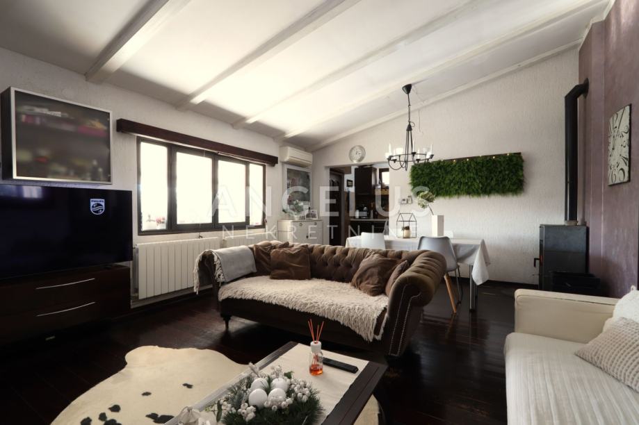 Unutrašnjost kuće je dekorirana u starinskom stilu sa puno drva i antiknim namještajem. U dnevnom boravku se nalazi peć na drva za grijanje i ugođaj u zimskim mjesecima. Inače, grijanje u kući je centralno plinsko sa spremnikom plina koji se nadopunjava u dvorištu. Također u kući postoji klima uređaj. Vlasništvo je čisto, a kuća je legalna.