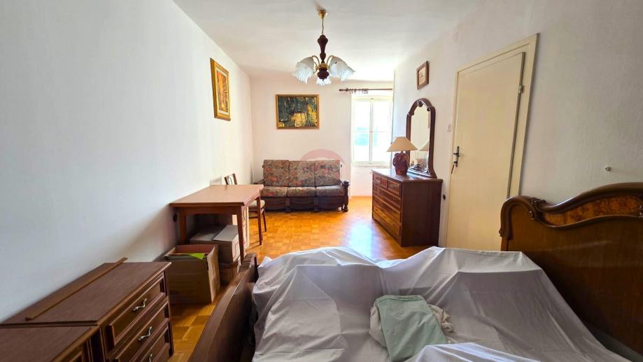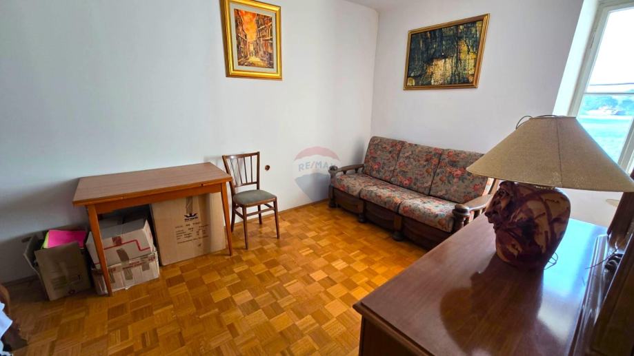 Dvije prostrane sobe, obje s pogledom na more. Mogućnost preuređenja u dva manja studija ili jedan veći apartman.