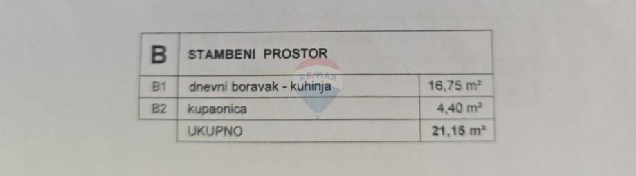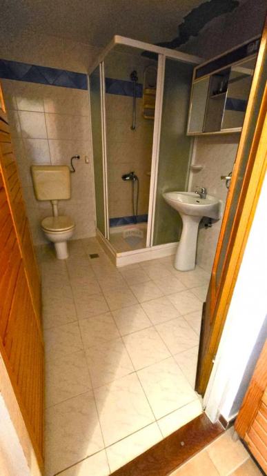Trenutno studio s kupaonicom i direktnim pogledom na more. Idealno za prenamjenu u poslovni prostor (trgovina, galerija, suvenirnica...) s obzirom na visoku frekvenciju prolaznika.