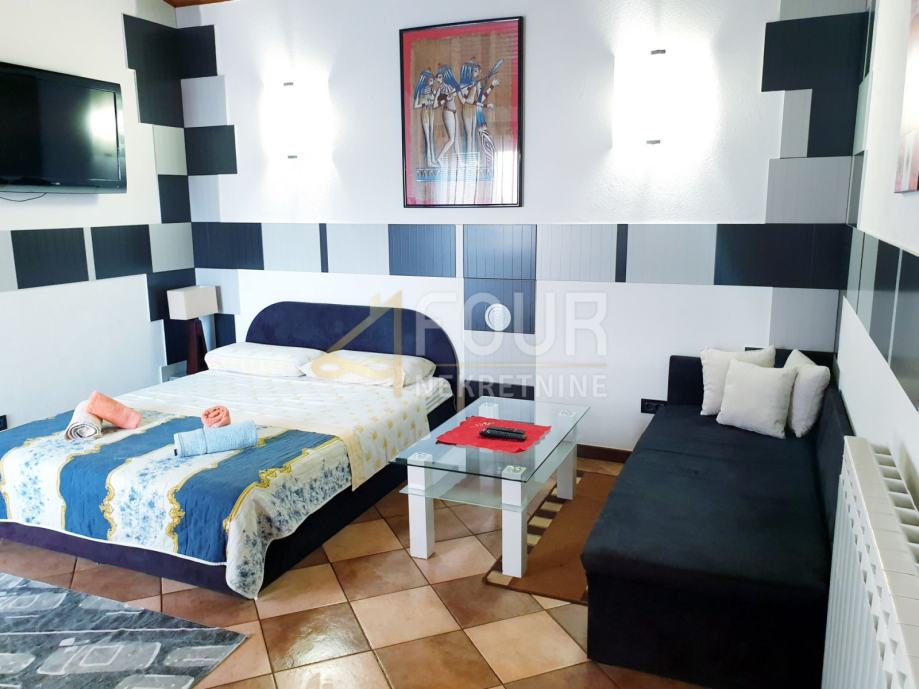 U prizemlju se nalaze dva stana, jedan jednosobni s dnevnim boravkom i drugi dvosobni s dnevnim boravkom, koji ima izlaz na natkrivenu terasu i prostranu okućnicu od 155m2. Na prvom katu je prostrani stan od 126m2 s dvije spavaće sobe, kuhinjom, blagovaonicom, dnevnim boravkom, kupaonicom, toaletom, ostavom i natkrivenom terasom od 26m2. Drugi kat se sastoji od dva stana, svaki sa spavaćom sobom, hodnikom, kupaonicom, kuhinjom s dnevnim boravkom i terasama.